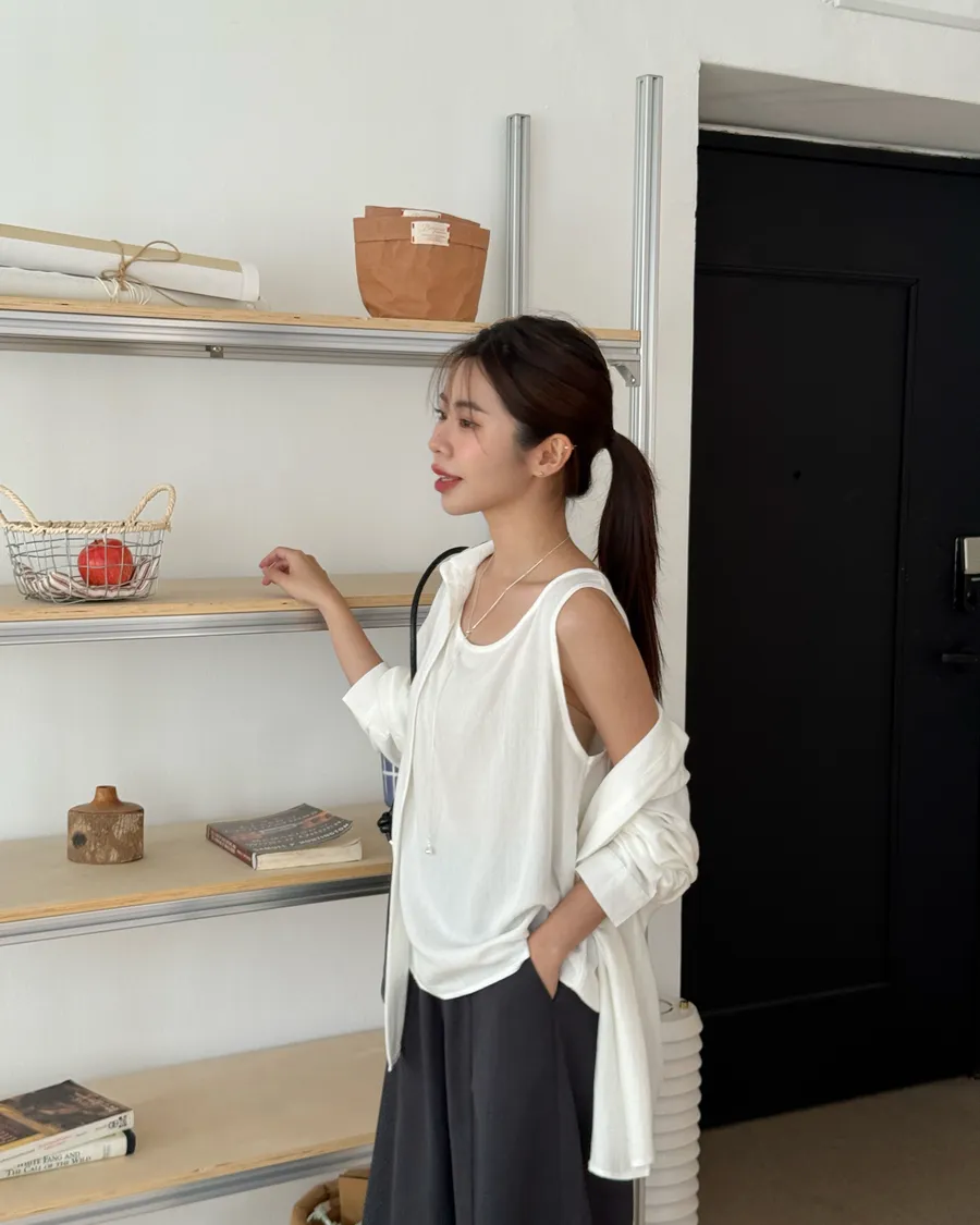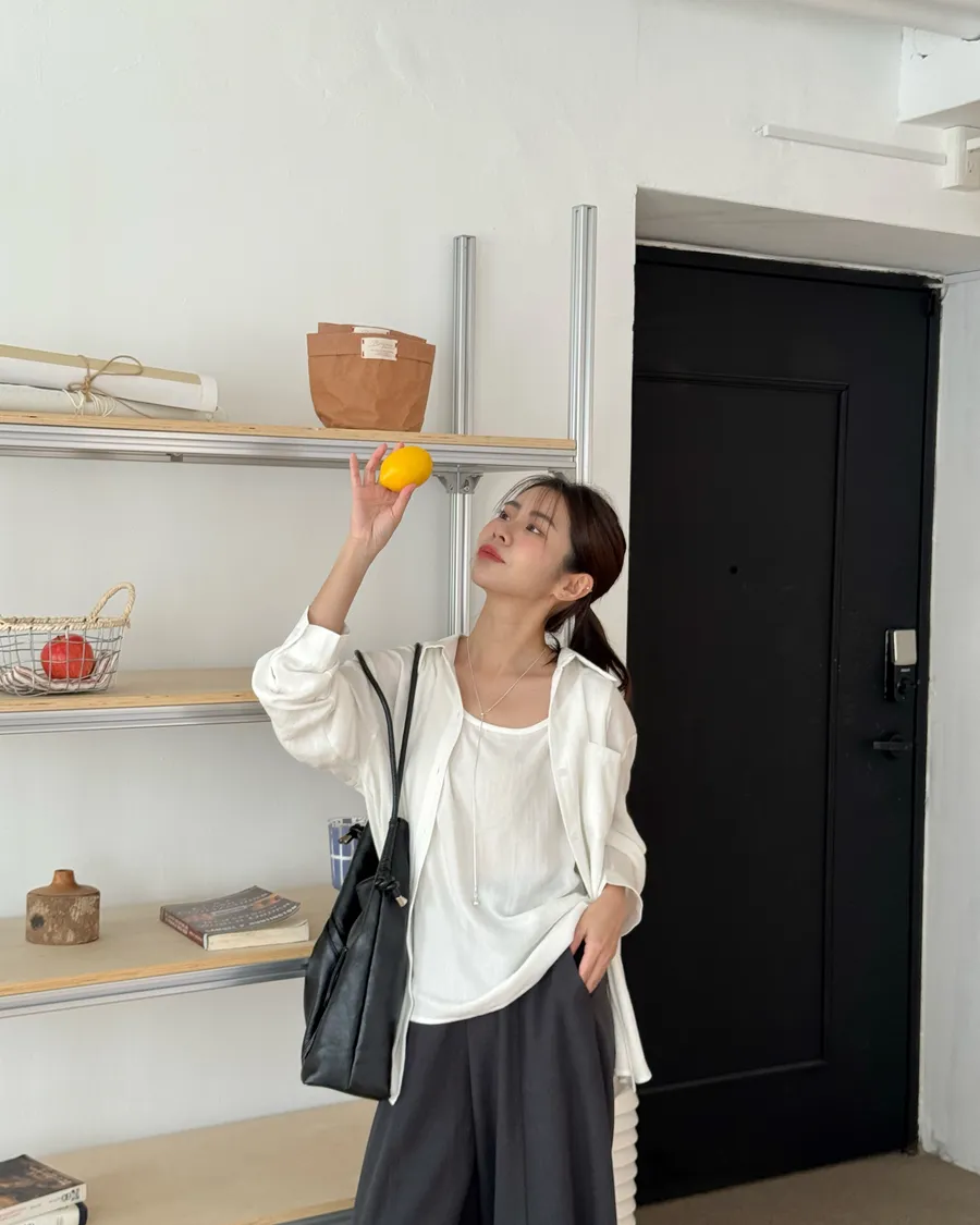 ❸單穿襯衫 版型寬鬆 夏天防曬小外套首選