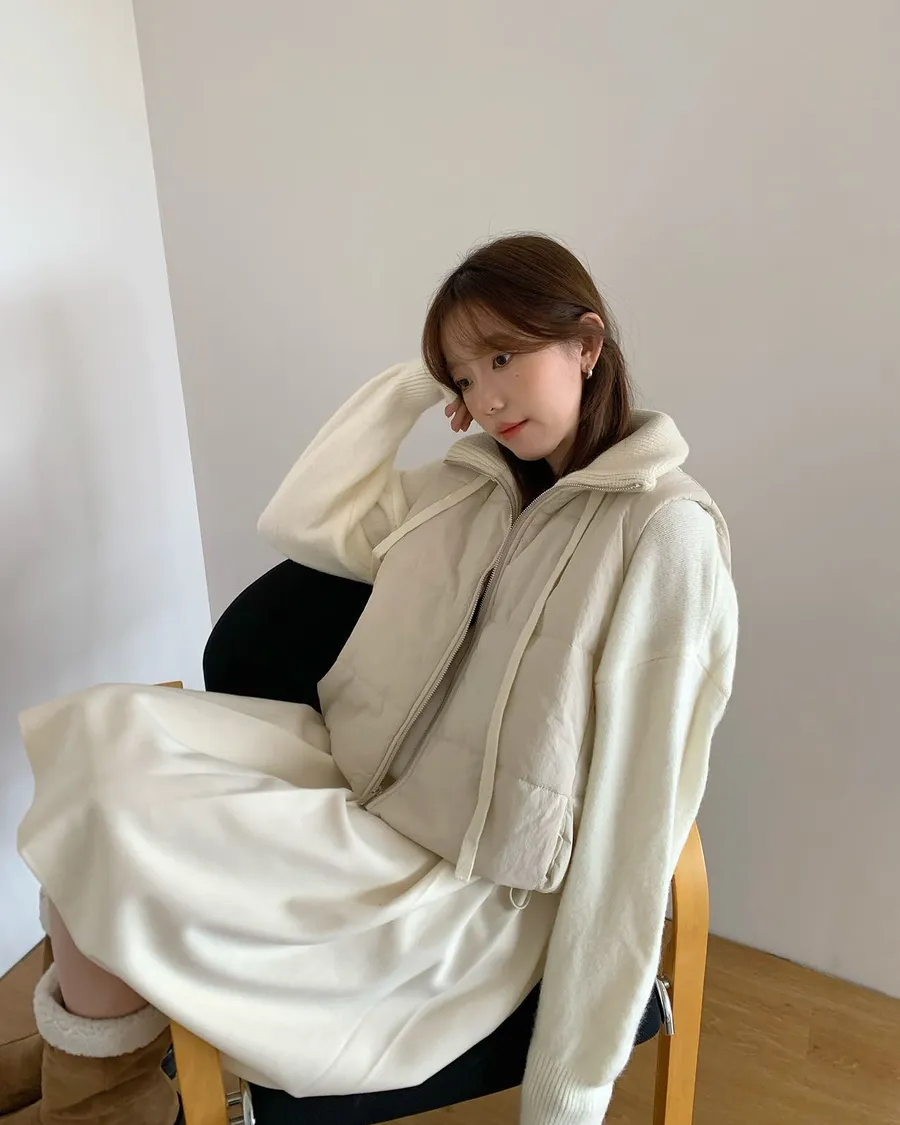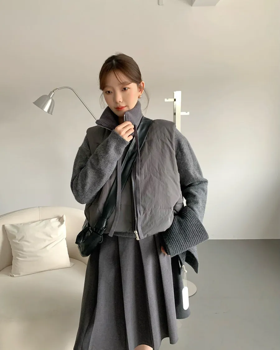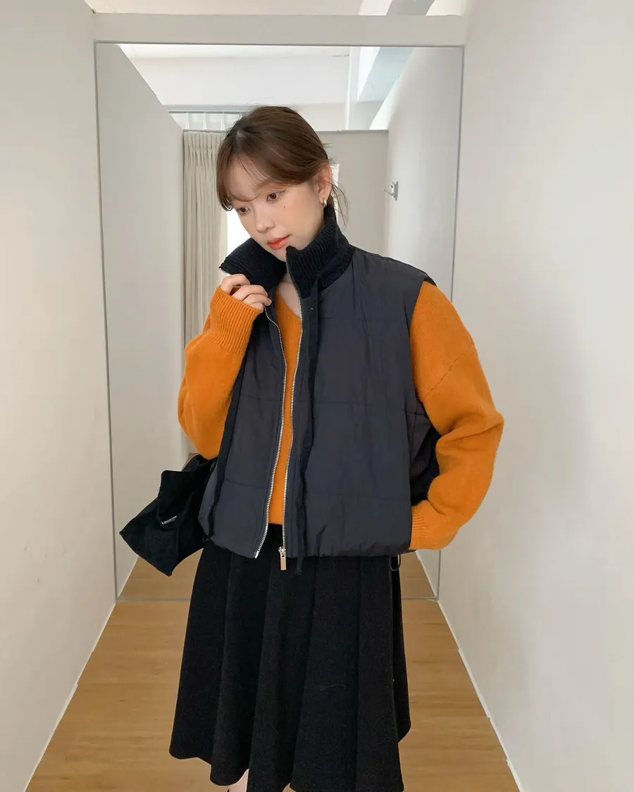 針織拼接的高領設計🧣妥妥的韓系溫柔風格