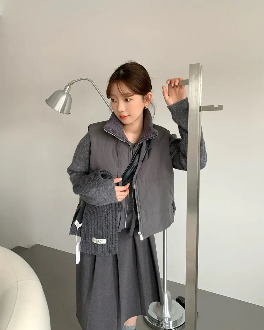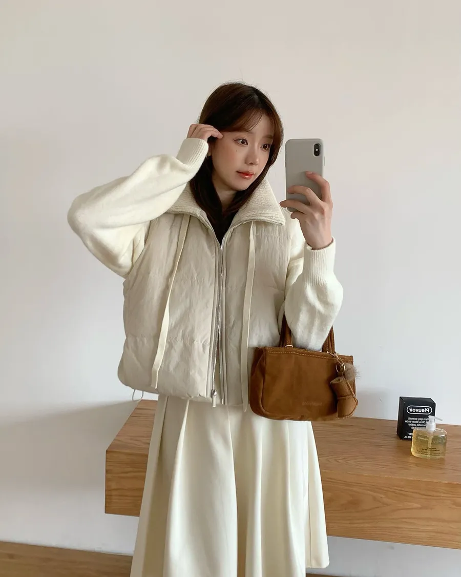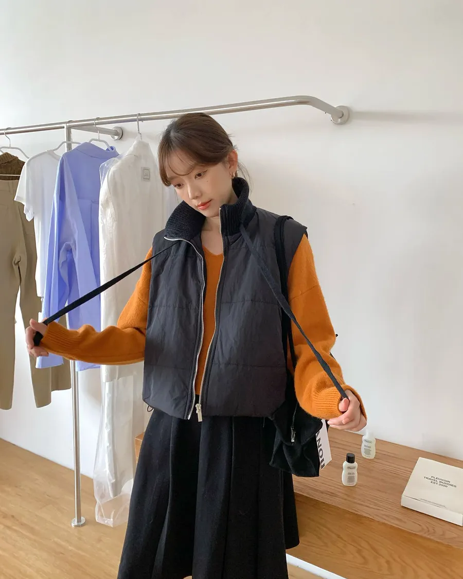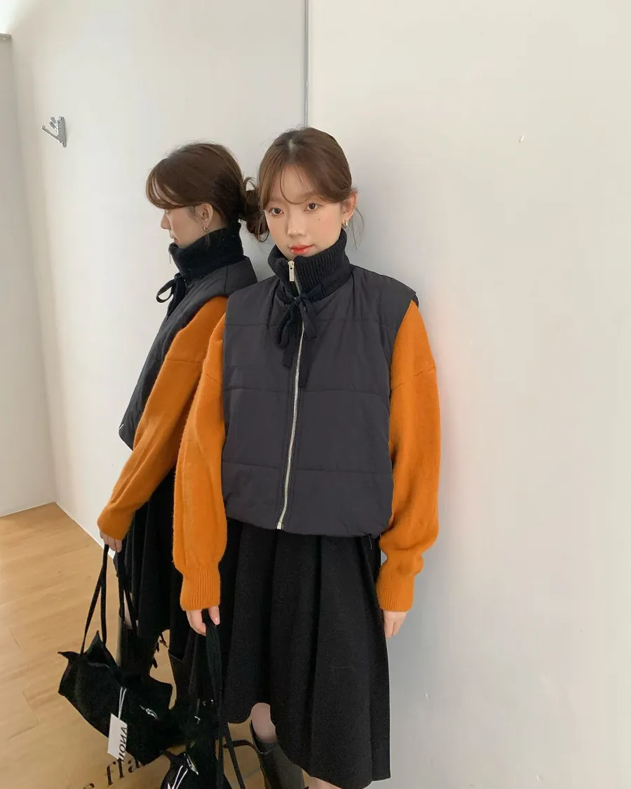 針織拼接的高領設計🧣妥妥的韓系溫柔風格