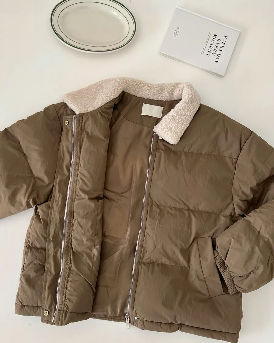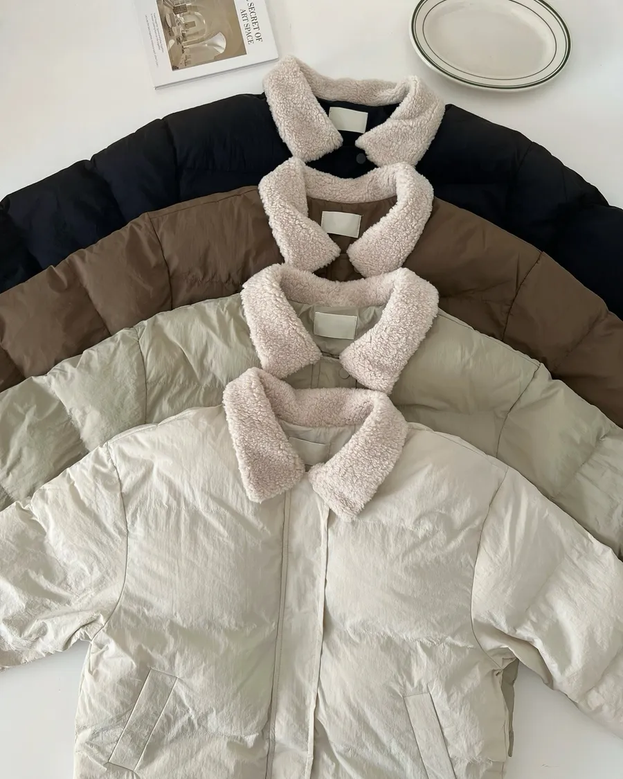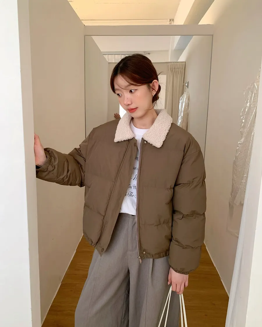 可愛的羊羔毛翻領 讓整件外套多了軟萌感🐑