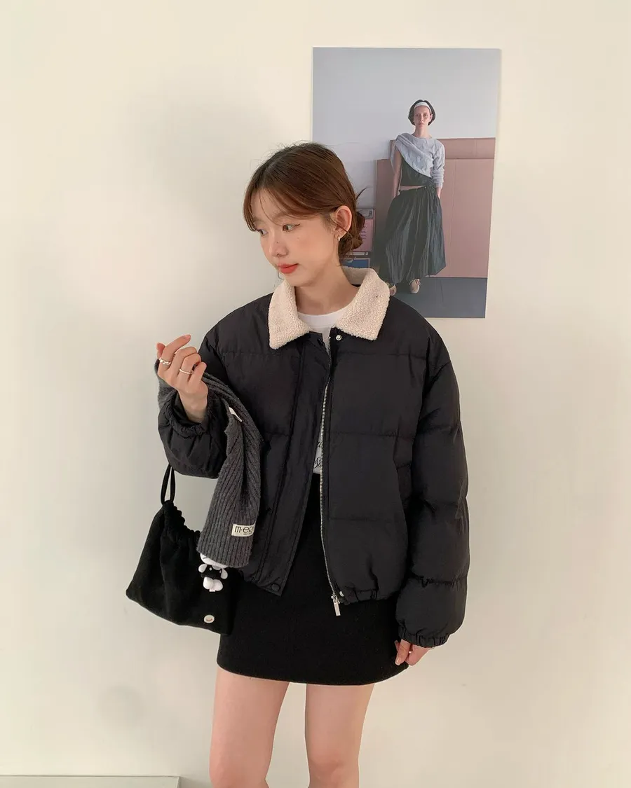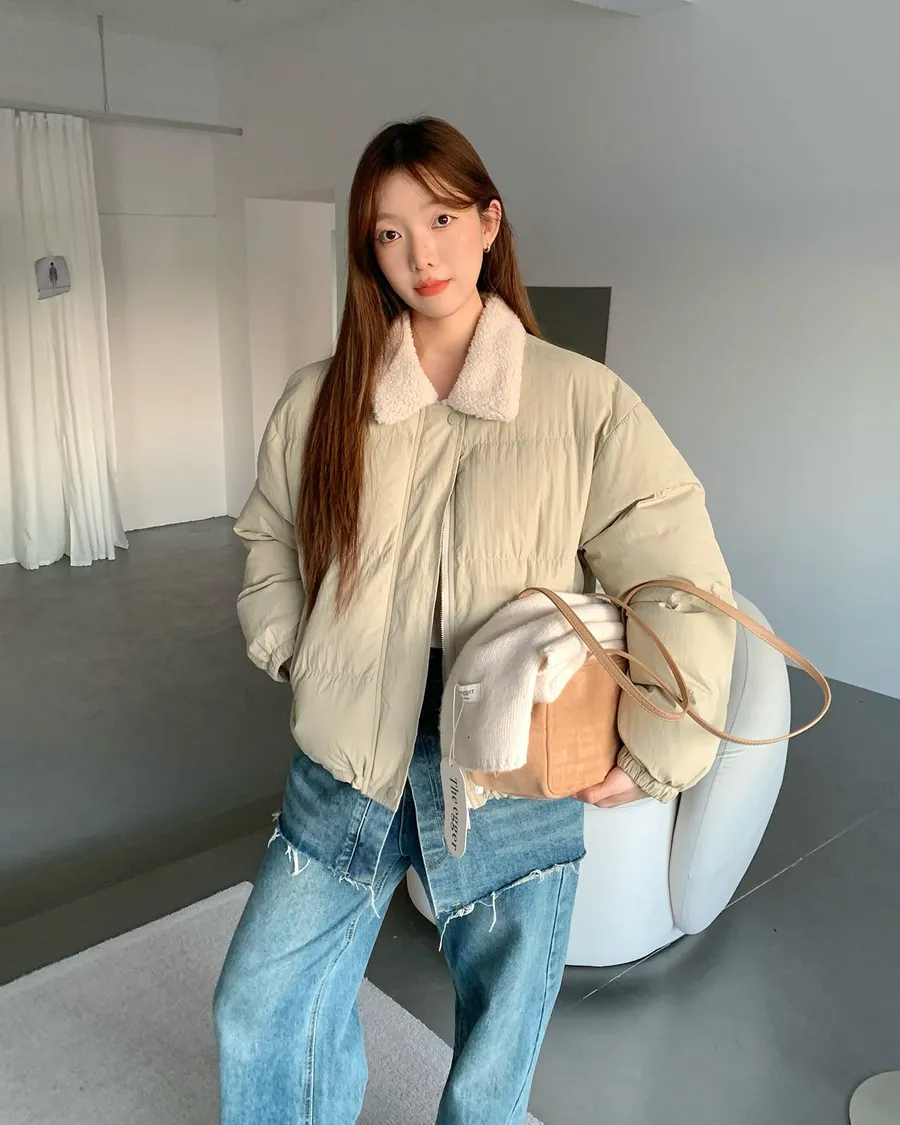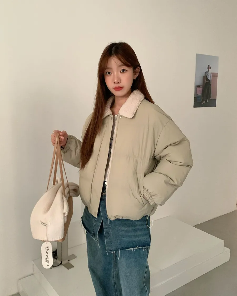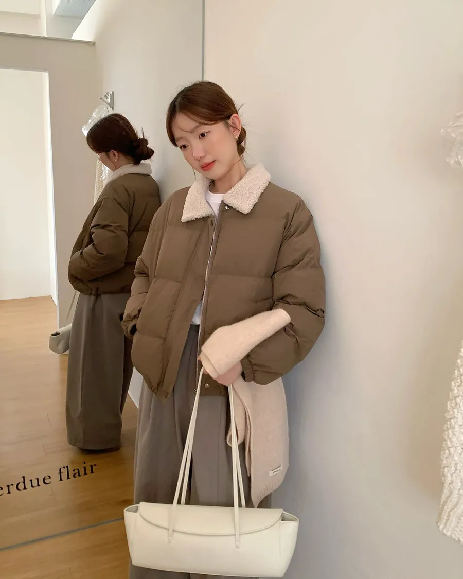 可愛的羊羔毛翻領 讓整件外套多了軟萌感🐑