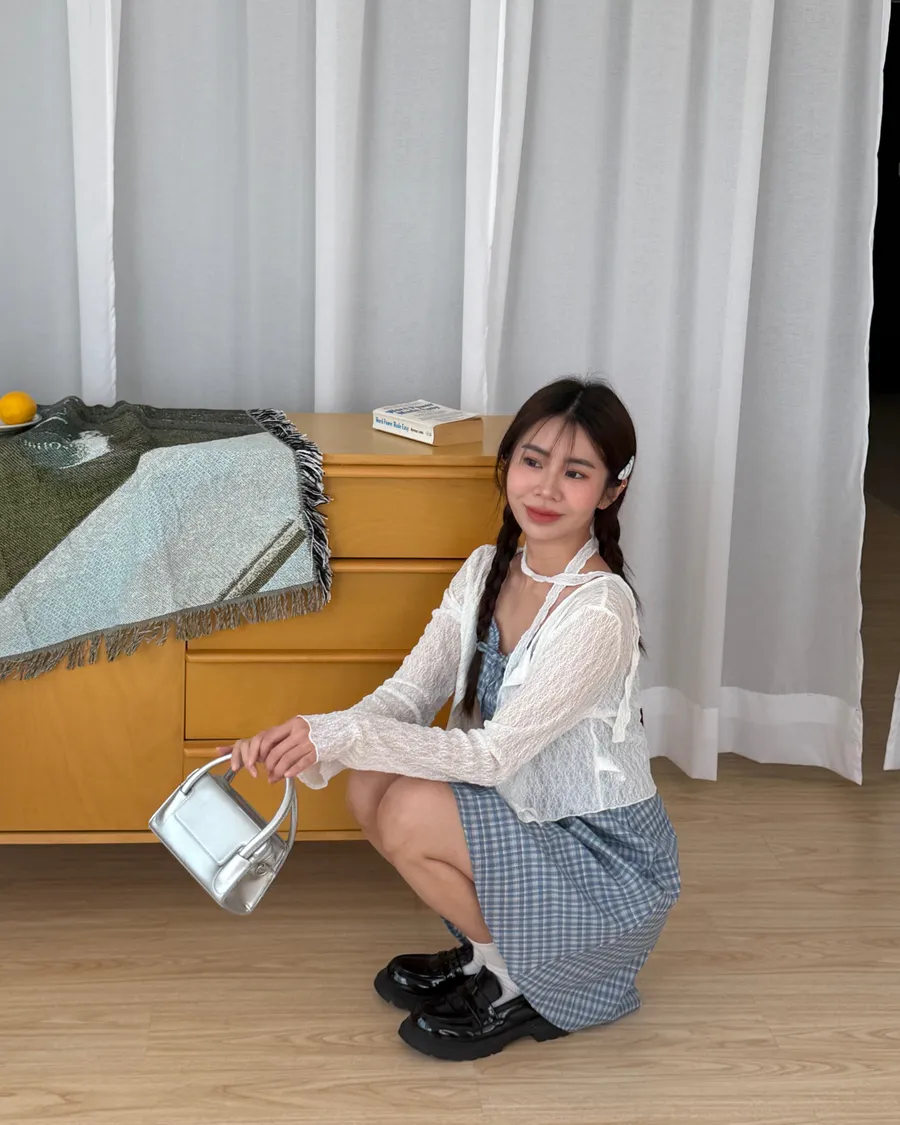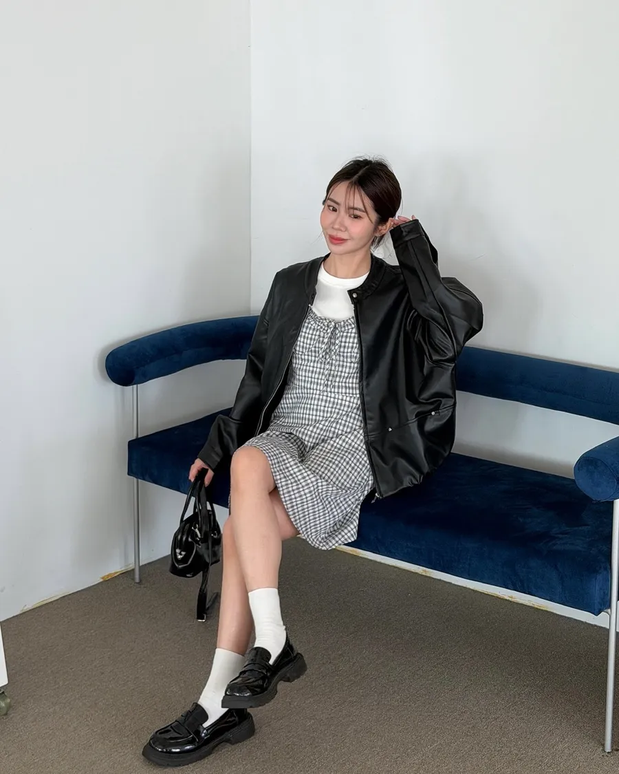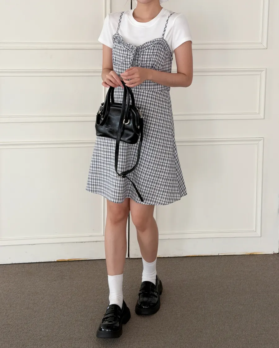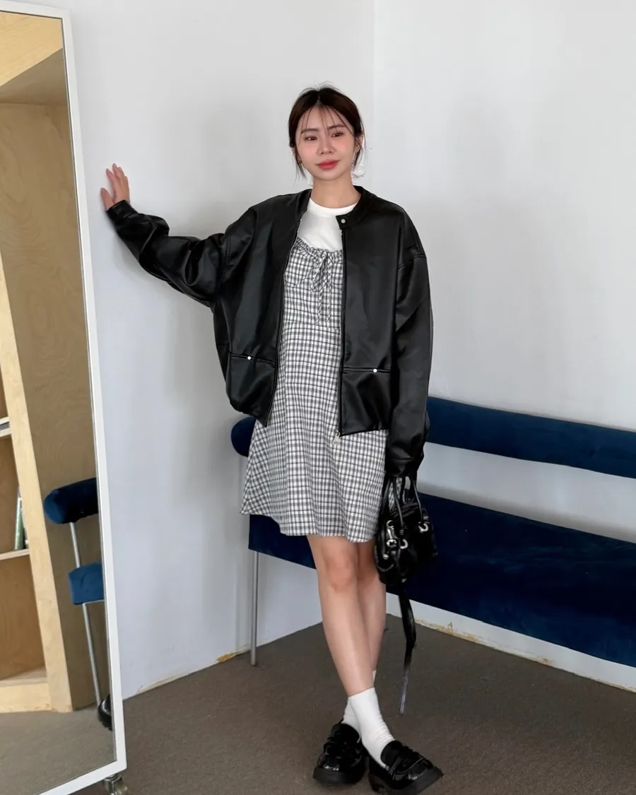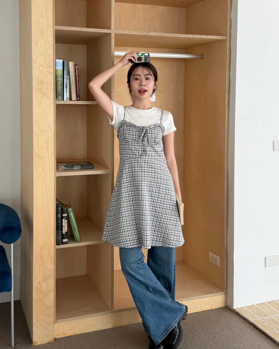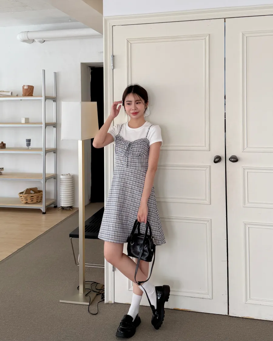 ❷內搭素T疊穿 整體更有韓系層次感 ☕️