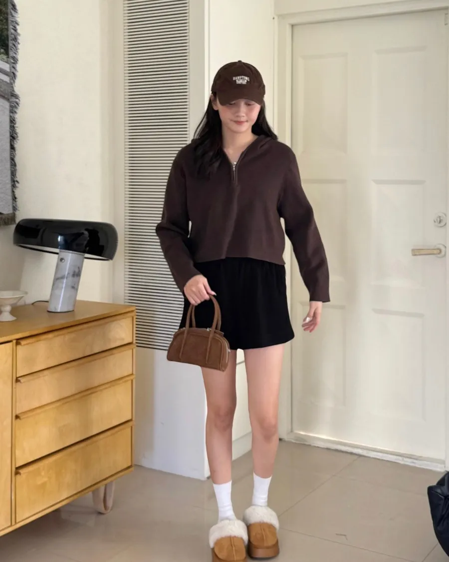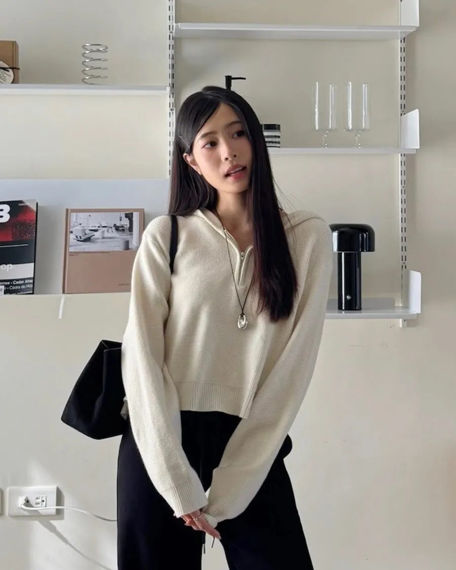 半拉鏈加上連帽設計🧢完全是不退流行的基本款