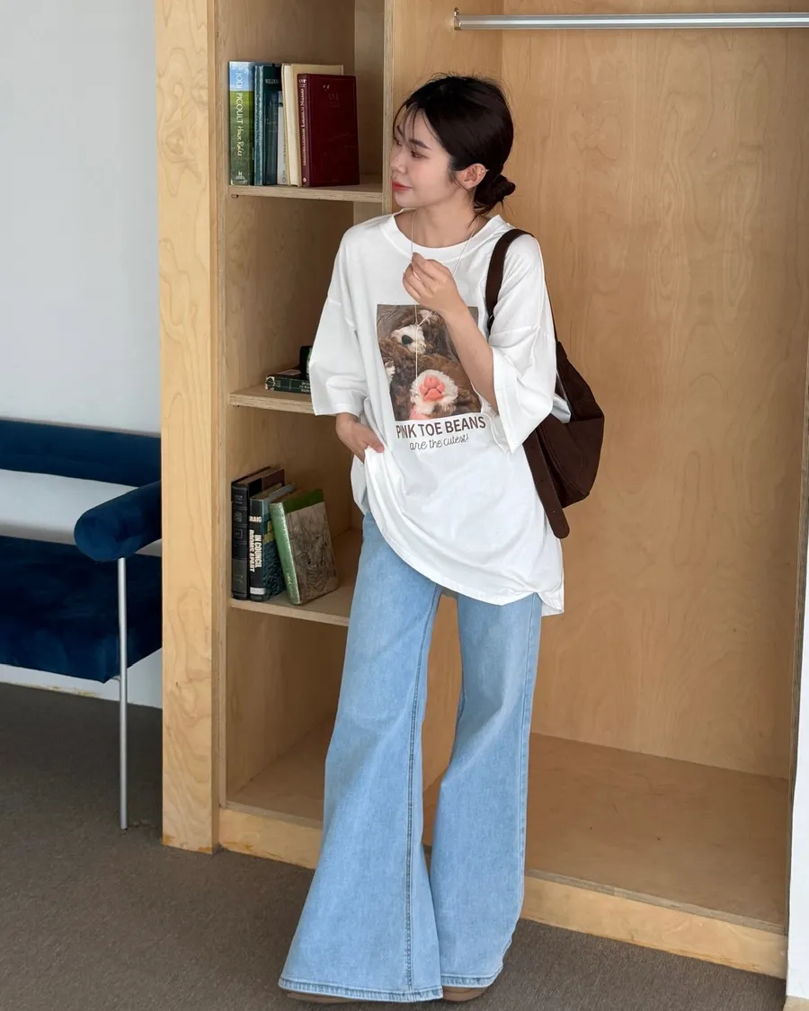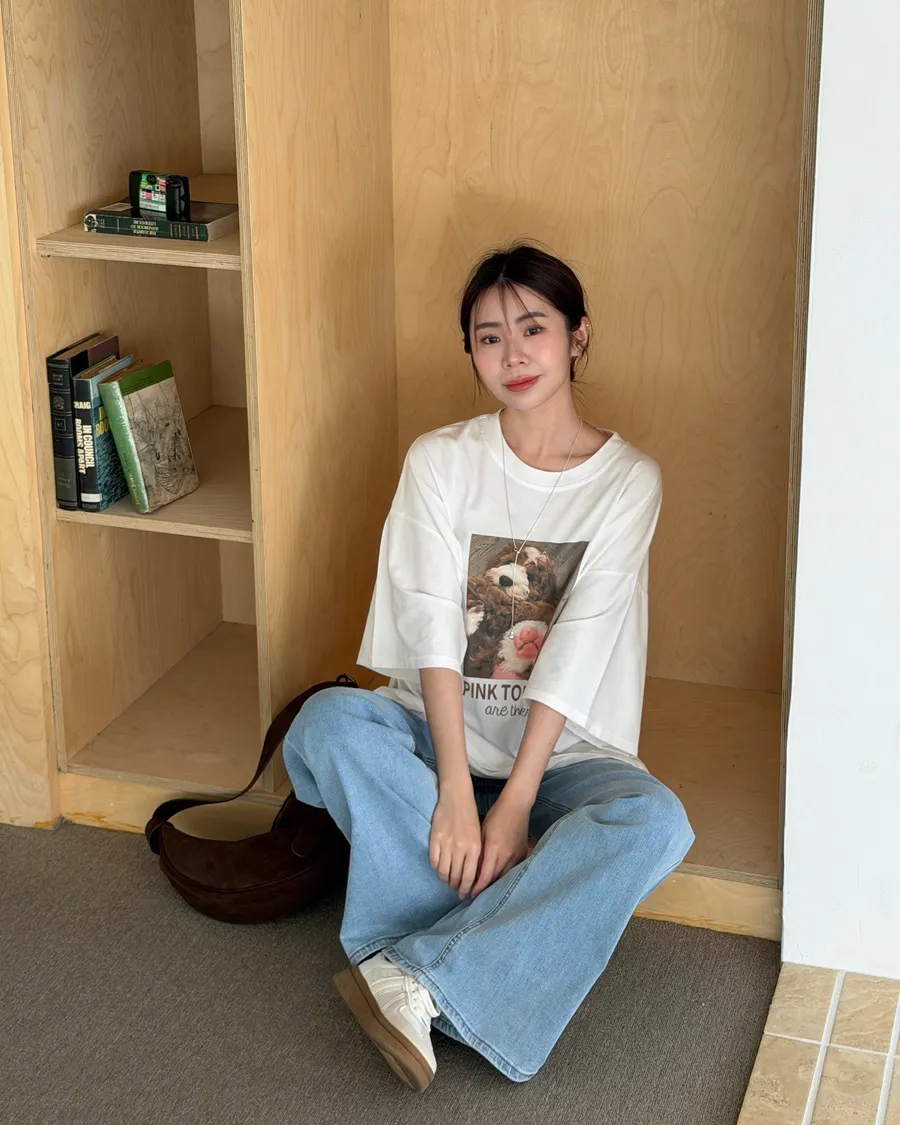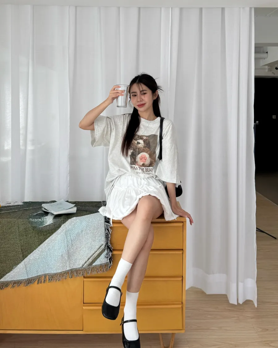白/花灰色 搭配牛仔褲👖一秒穿出春夏的清爽感