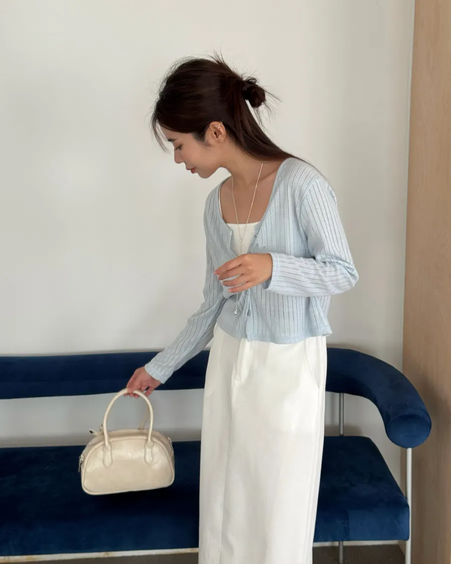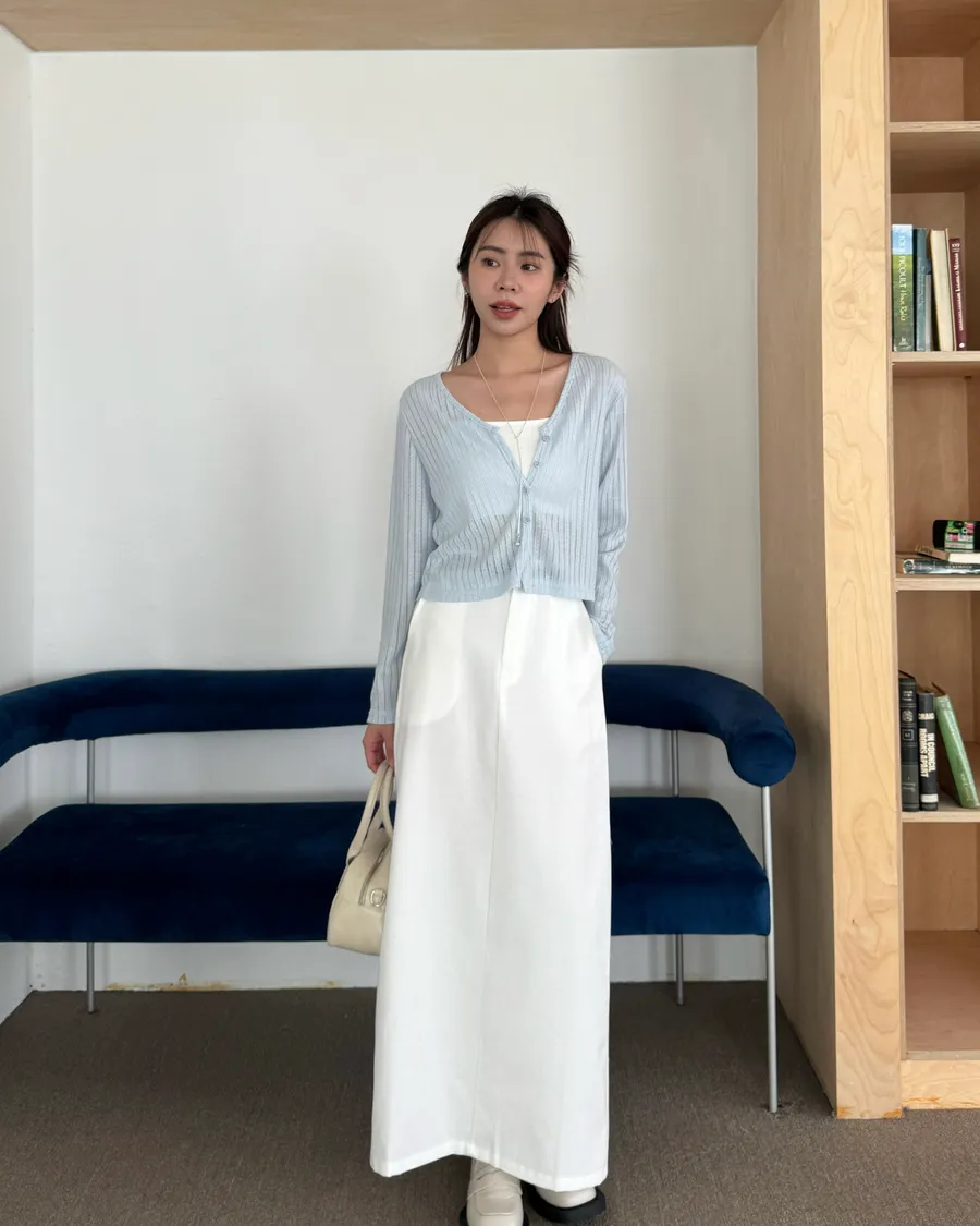 直紋的鏤空針織 除了能修飾身形外