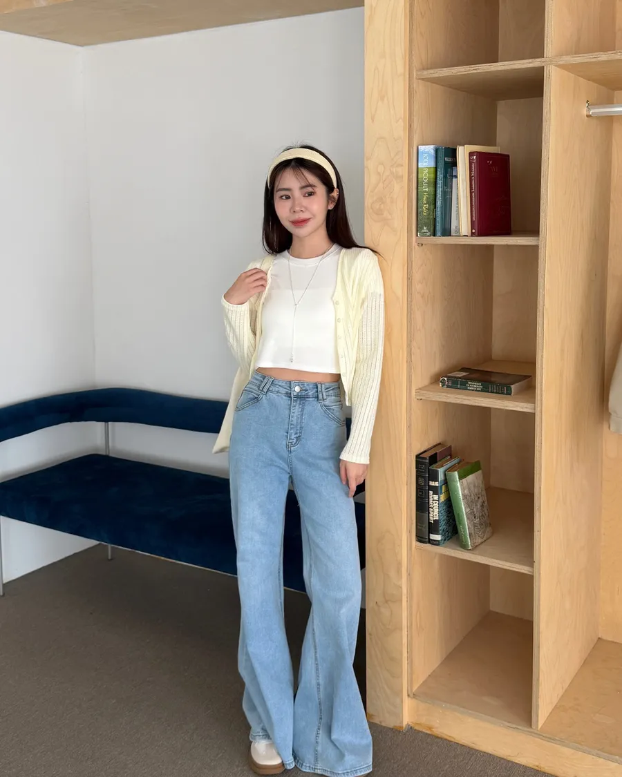 【彈性/版型】些許/微短版 【顏色】杏/藍/黃/綠